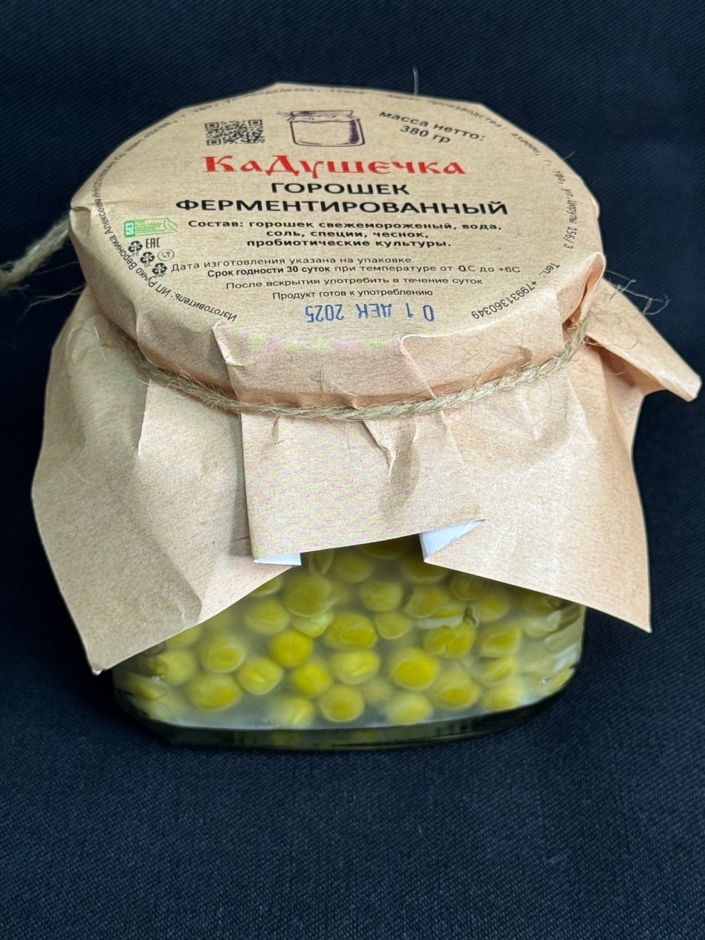 Состав: горошек замороженный, вода, чеснок, соль, заквасочные культуры