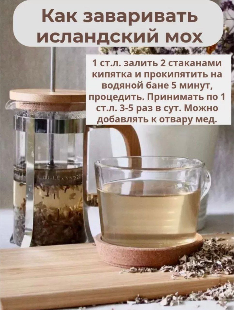 Исландский мох также помогает организму восстановиться после болезней и имеет противовоспалительные свойства.