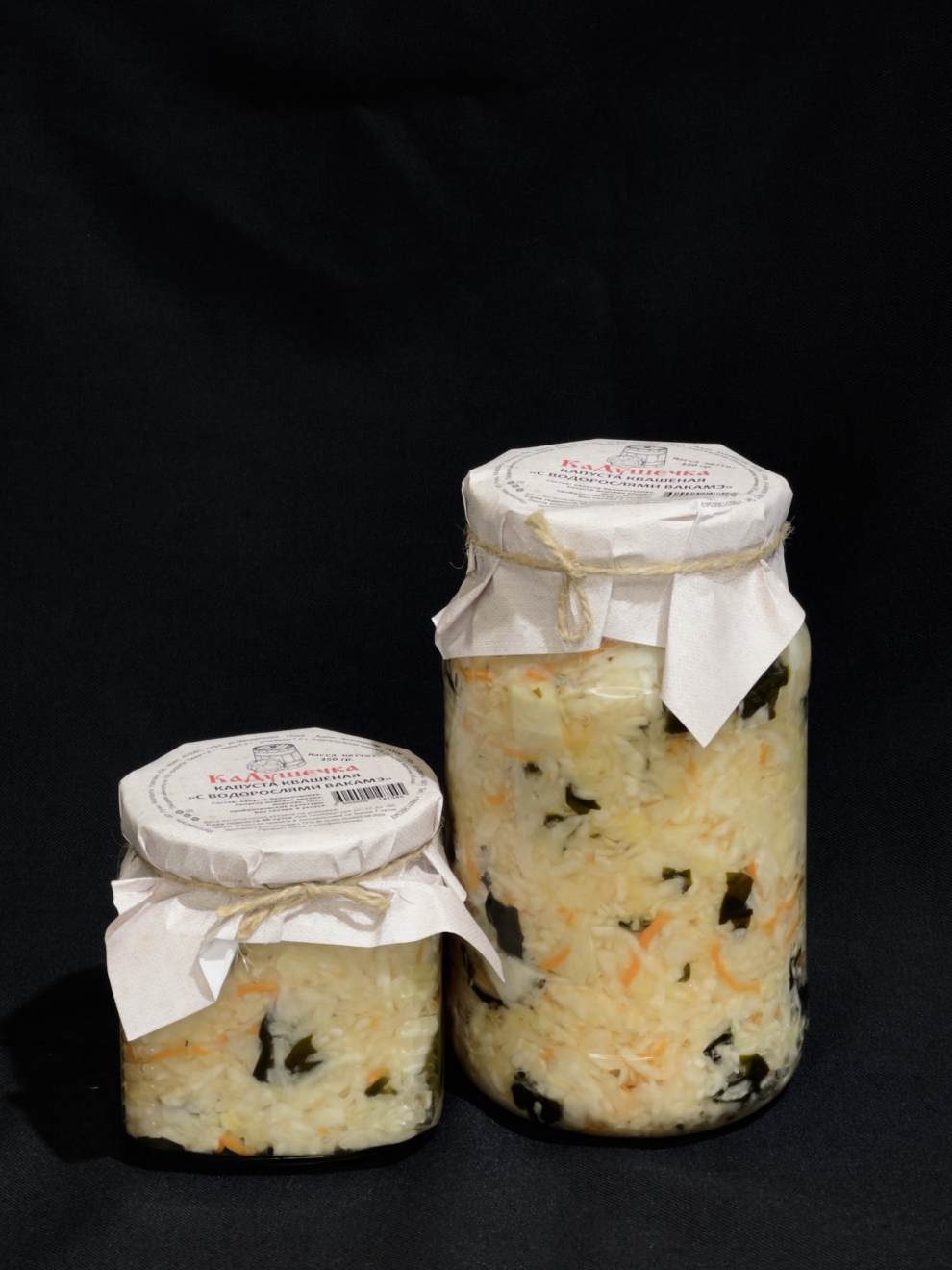 Мы смешиваем хрустящую белокочанную капусту и сладкую морковь с водорослями вакамэ. Эти водоросли содержат йод и другие полезные вещества. Мы добавляем специальные бактерии, чтобы овощи прошли процесс ферментации. В результате получается необычная закуска, которая помогает организму лучше работать в условиях большого города.