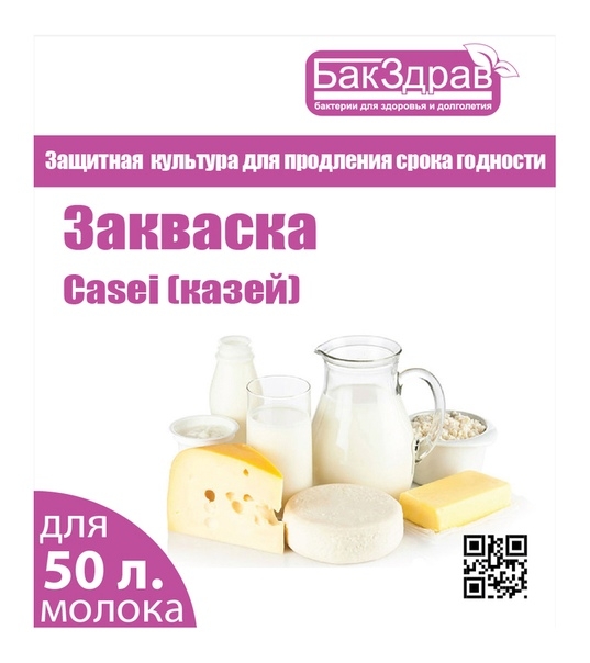 Заквасочная культура Casei Бакздрав повышает безопасность и продлевает сроки годности кисломолочных продуктов и сыров за счет выраженных антагонистических свойств в отношении нежелательной микрофлоры. Не является отдельной закваской, является дополнительной защитной культурой и используется вместе с основной закваской.