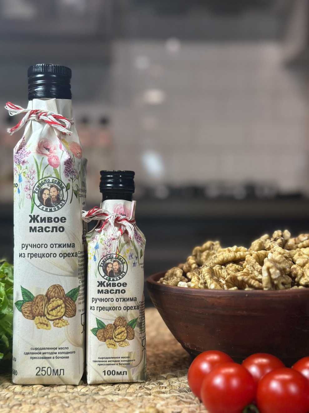 Сыродавленное масло грецкого ореха — это природный эликсир молодости и здоровья. Оно не только вкусное, но и полезное. Обладает легким ореховым вкусом, светло-желтым цветом и нейтральным ароматом.