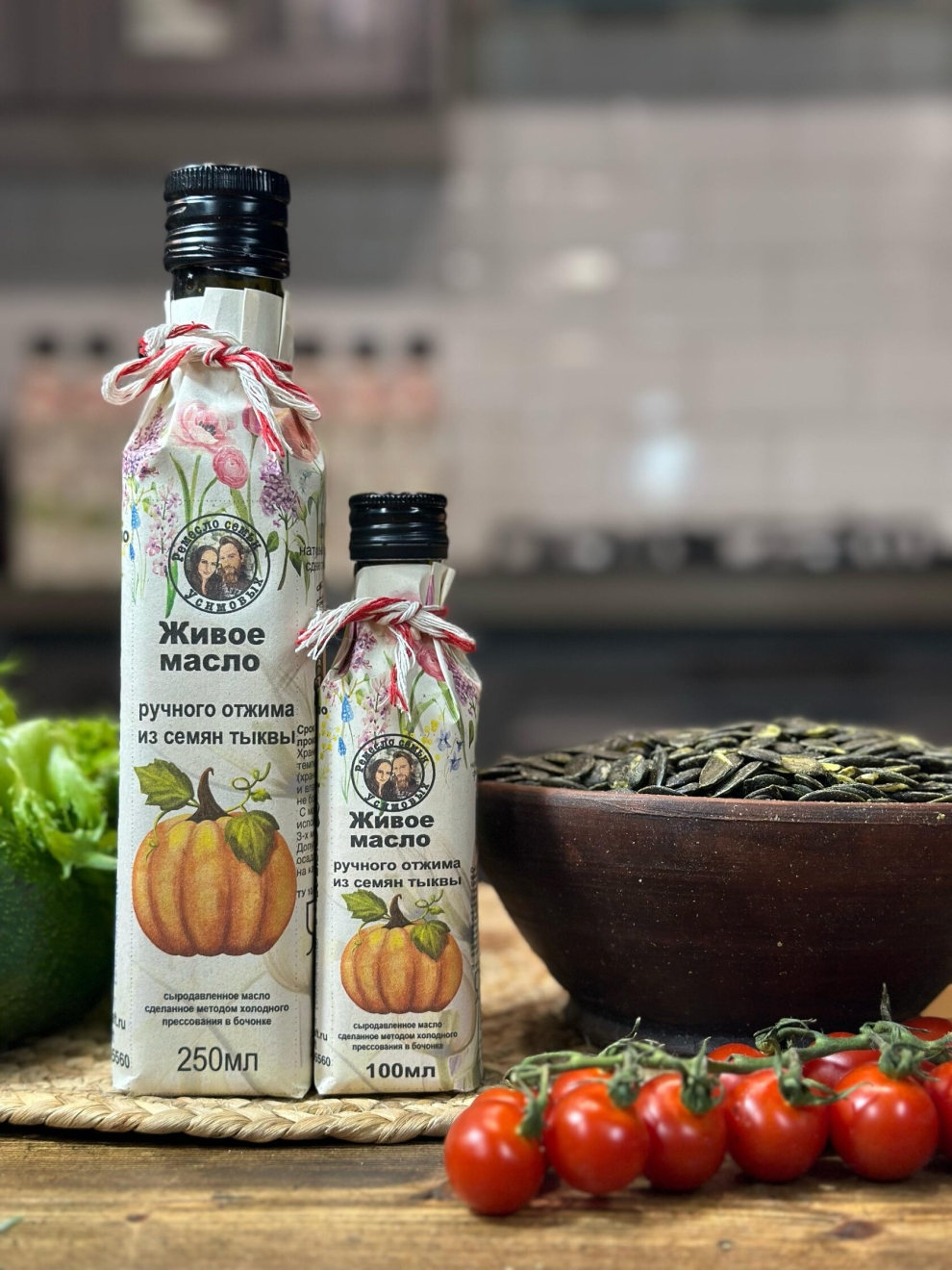 Масло из семян штирийской тыквы — эликсир здоровья. Закупаем у российских фермеров. Имеет лёгкий аромат, насыщенный вкус и тёмно-зелёный цвет.