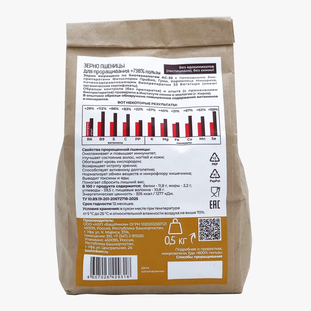 Зерно выращено по биотехнологии АС-35 с природными биопрепаратами Фитоспорин ПроБио, Гуми, Кормилица Микориза, почвооздоравливающим биопрепаратом 33 Богатыря (имеют органические сертификаты).